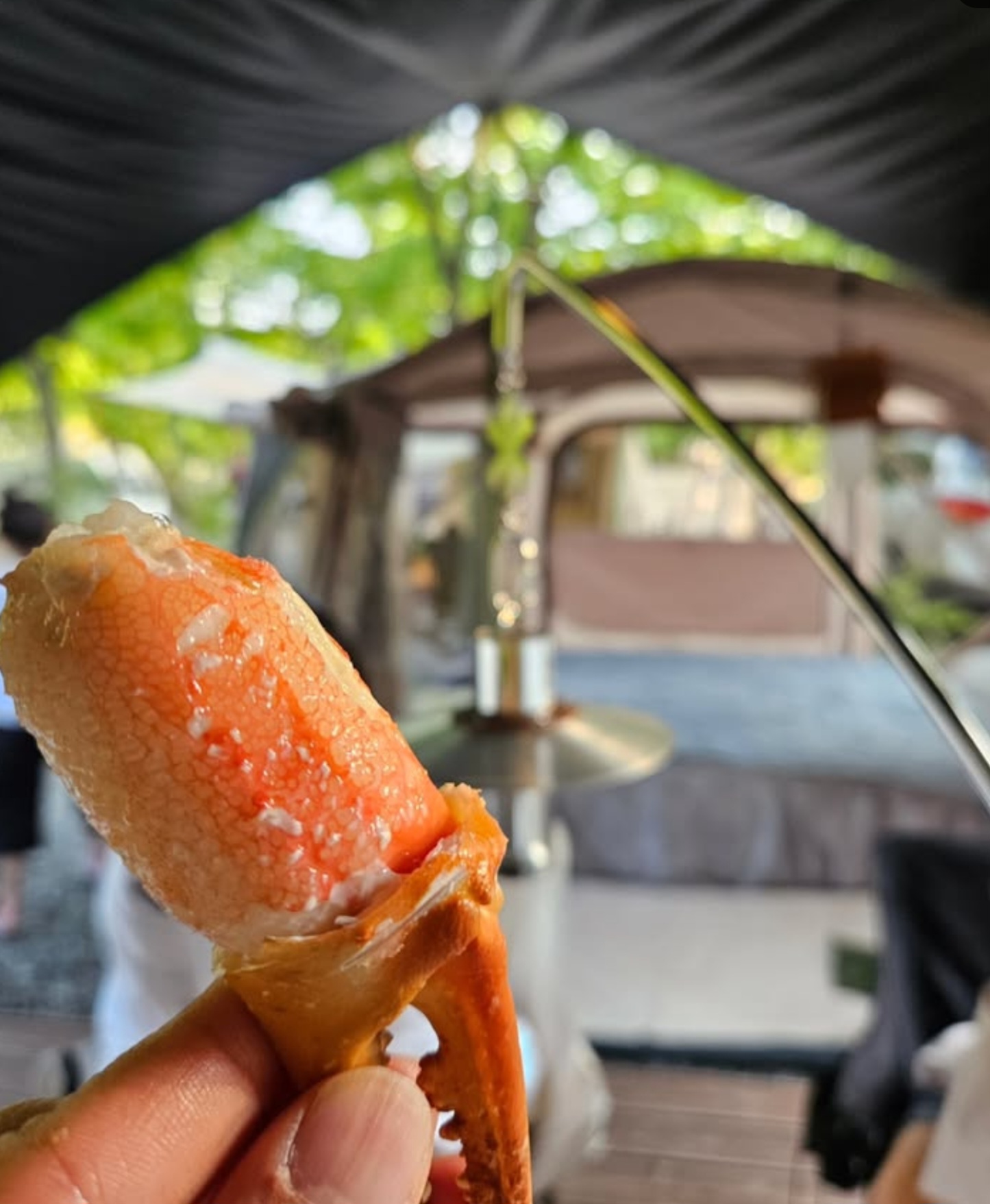 > "대왕게 먹방 캠핑! 가족과 함께한 힐링 한끼"