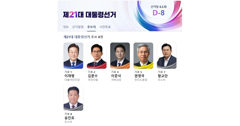 2025년 6월 3일 실시 예정인 제21대 대통령선거에는 총 6명의 후보가 등록되었으며, 이 중 정책 및 시장 반응 면에서 주목받는 후보는 다음 3인입니다.